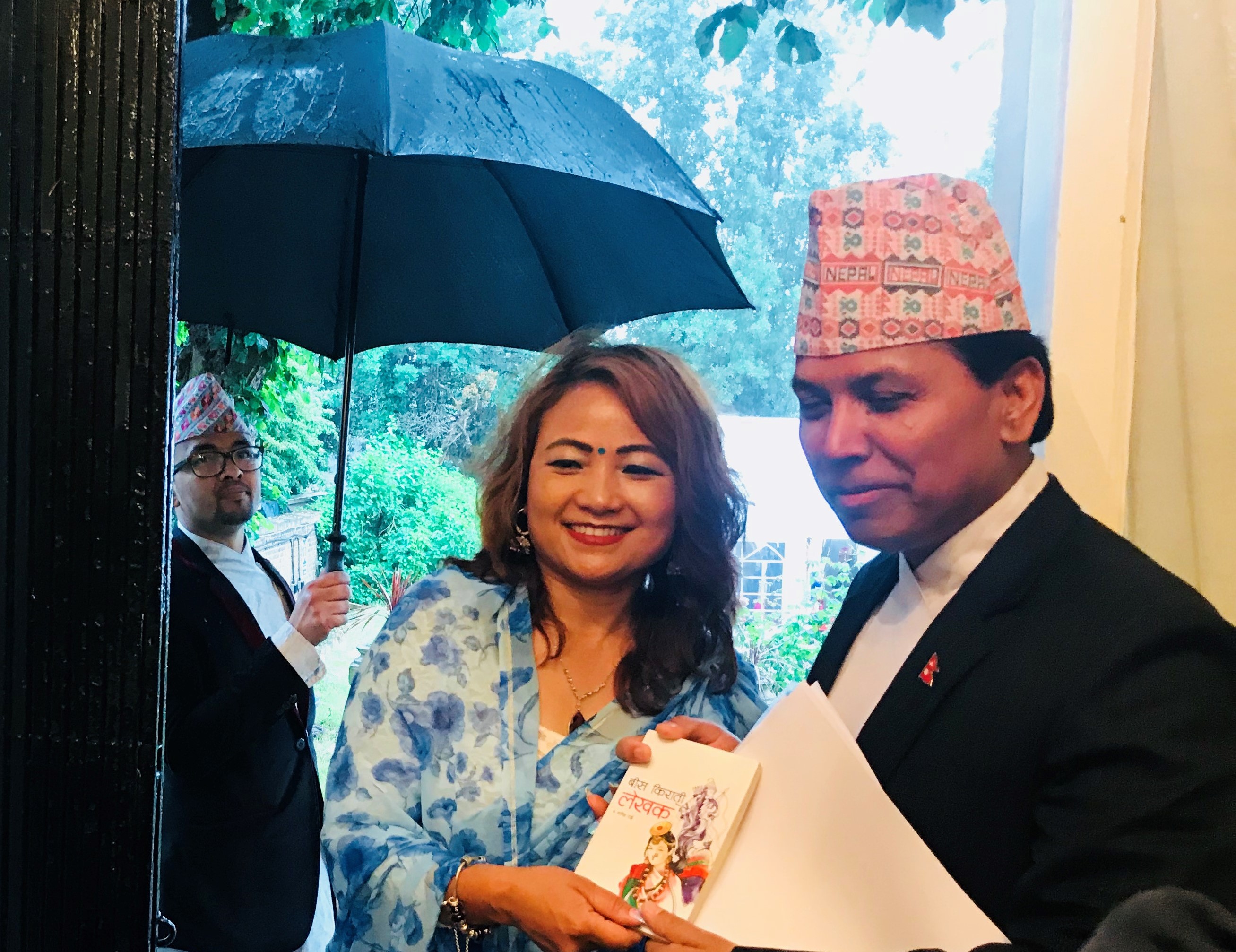 H.E The Ambassador Dr Durga Bahadur Subedi and a Guest. Note the weather outside the Embassy.